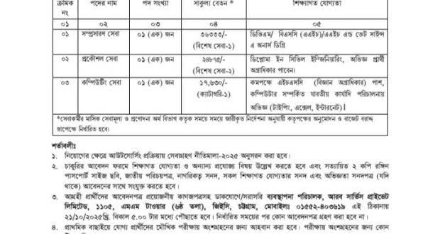 “৩টি পার্বত্য জেলায় সমন্বিত প্রাণিসম্পদ উন্নয়ন প্রকল্প” এর অধীনে ৩১ ডিসেম্বর, ২০২৭খ্রি পর্যন্ত বা প্রকল্প মেয়াদের জন্য আউটসোর্সিং এর আওতায় সম্পূর্ণ অস্থায়ী ভিত্তিতে নিম্নোক্ত পদসমূহে বাংলাদেশী নাগরিকদের নিকট হতে দরখাস্ত আহবান করা যাচ্ছে–(বিজ্ঞাপন রূপান্তর বাংলা)