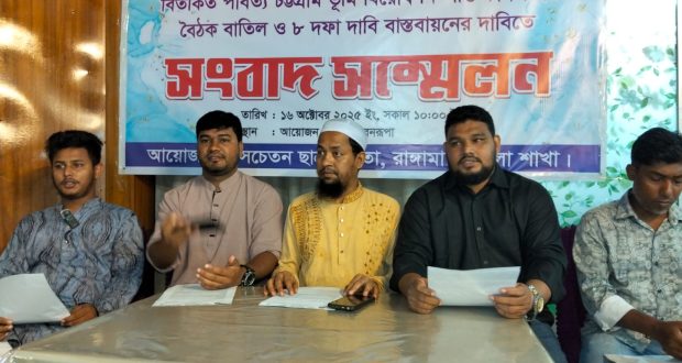 ১৯ অক্টোবর রবিবার সারাদিন ব্যাপি রাঙামাটি শহরের প্রতিটি মোড়ে দেশপ্রেমিক ছাত্র- জনতা অবস্থান নিবে। অবস্থান নিয়ে বৈঠক স্থান ঘেরাও ও পৌর এলাকায় অবরোধ কর্মসূচি পালন করা হবে।