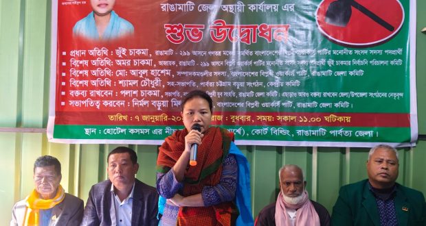 এতে প্রধান অতিথি হিসাবে উপস্থিত ছিলেন রাঙামাটি – ২৯৯ আসনে গণতন্ত্র মঞ্চের সমর্থিত বাংলাদেশের বিপ্লবী ওয়ার্কার্স পার্টির মনোনীত সংসদ সদস্য পদপ্রার্থী জুঁই চাকমা।